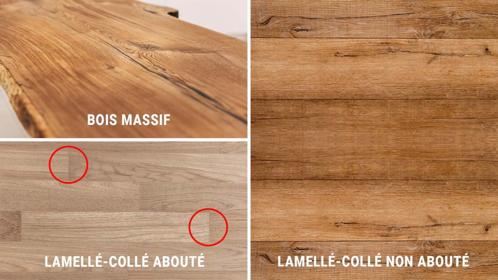 Lamellé-Collé Abouté signifie que les lamelles de bois sont collées dans le sens de la longueur et mises de bout en bout.